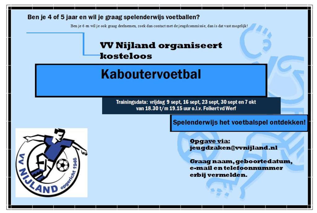 Geplaatst op 29/08/2022 door Wytske HeidaKaboutervoetbal in Nijland Laat dit veld leeg Schrijf je in om elke week updates te ontvangen. . Controleer je inbox of spammap om je abonnement te bevestigen.